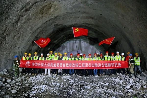 今年7月8日,當(dāng)最后一層巖壁在爆破聲中轟然洞開,寶石山特長(zhǎng)隧道右幅透出一縷微光——大保高速改線工程16公里隧道項(xiàng)目最后一座隧道宣告貫通。